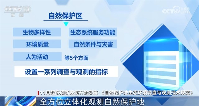生態(tài)環(huán)境部發(fā)布的《自然保護地生態(tài)環(huán)境調(diào)查與觀測技術(shù)規(guī)范》將從11月1日起施行?!都夹g(shù)規(guī)范》對自然保護區(qū)的生物多樣性、生態(tài)系統(tǒng)服務(wù)功能、環(huán)境質(zhì)量、自然條件與災(zāi)害和人為活動等5個方面設(shè)置了一系列調(diào)查與觀測的指標(biāo),將綜合利用“天空地”各種觀測技術(shù)手段,形成集“遙感監(jiān)測、地面觀測與實地調(diào)查、資料收集與調(diào)查統(tǒng)計”等多種方法相結(jié)合的全方位、立體化調(diào)查與觀測技術(shù)體系。