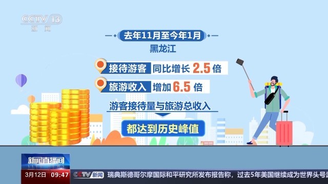 新的消費(fèi)業(yè)態(tài)也帶來(lái)了可觀的人氣,數(shù)據(jù)顯示,去年11月至今年1月,黑龍江接待游客同比增長(zhǎng)2.5倍、旅游收入增加6.5倍,游客接待量與旅游總收入都達(dá)到歷史峰值。