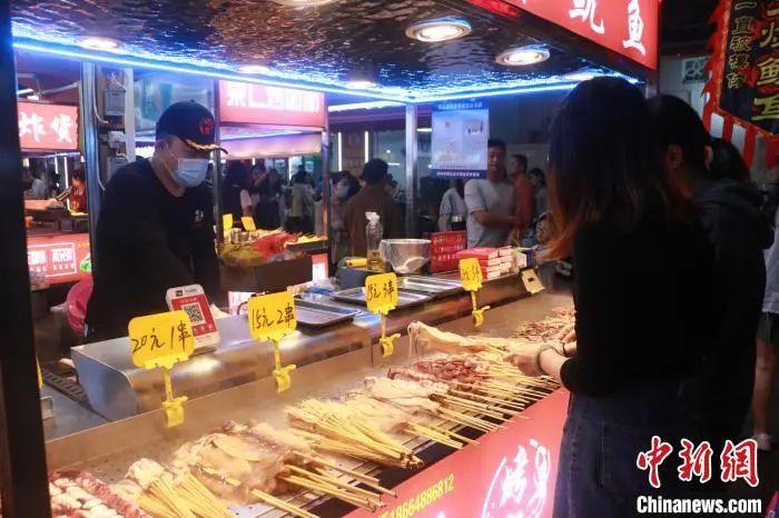 圖為游客正在購買燒烤。林馨 攝