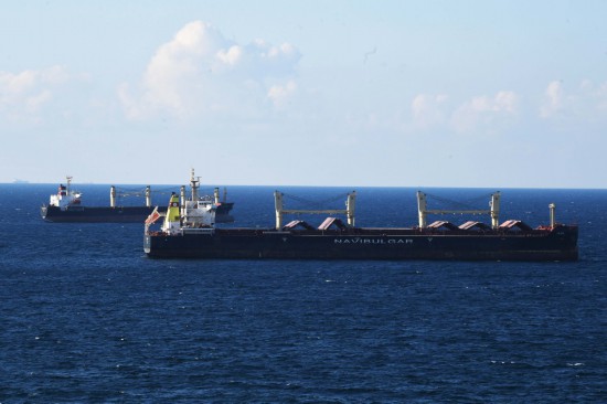 2022年8月6日,從烏克蘭出發(fā)的第二批運(yùn)糧船抵達(dá)土耳其伊斯坦布爾的博斯普魯斯海峽黑海入??诟浇#ㄐ氯A社記者沙達(dá)提攝)