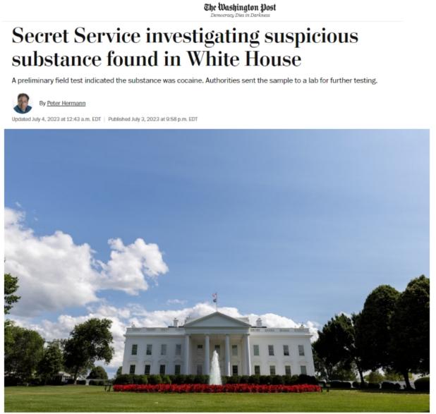 中新網(wǎng)7月4日電 據(jù)美國《華盛頓郵報》4日報道,當(dāng)?shù)貢r間2日晚,美國特勤局在白宮內(nèi)發(fā)現(xiàn)了一些可疑白色粉末狀物質(zhì),經(jīng)初步鑒定,其中含有可卡因成分。