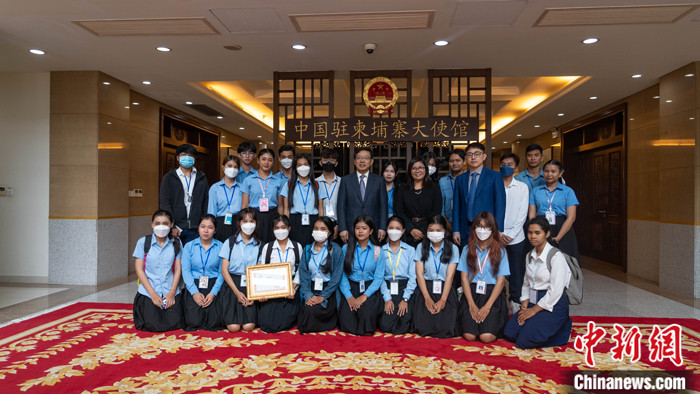 7月19日是中國和柬埔寨建交65周年紀念日。中國駐柬埔寨大使館當天舉辦開放日活動,邀請柬埔寨亞歐大學師生參加,共同回顧中柬友好悠久歷史,展望中柬關(guān)系美好未來。