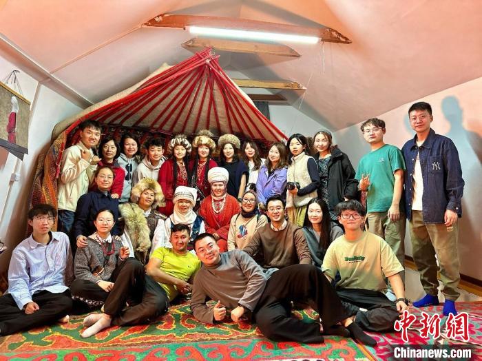 北師大未來設計學院師生在吉爾吉斯斯坦民族服飾設計工作室體驗當地傳統(tǒng)服飾。北師大未來設計學院供圖