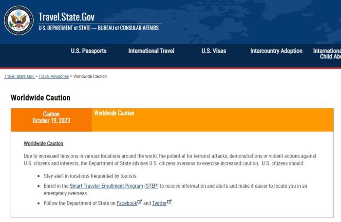 美國(guó)國(guó)務(wù)院網(wǎng)站消息指出,美國(guó)公民應(yīng)該在游客常去的地方保持警惕、關(guān)注美國(guó)國(guó)務(wù)院社交媒體賬號(hào)等。