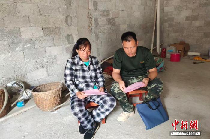 圖為黃樹樂(右一)在入戶進行防火宣傳。受訪者供圖