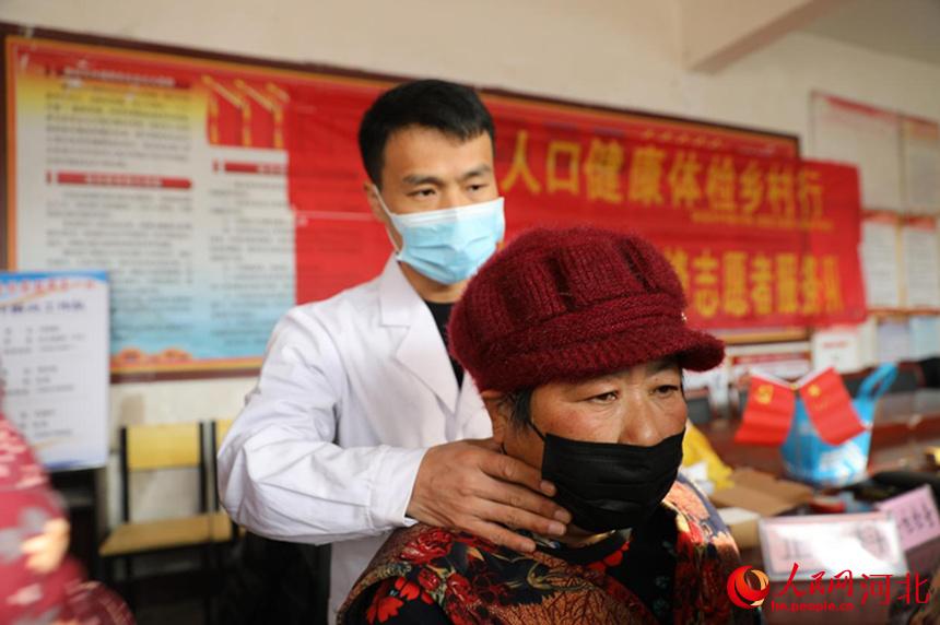 河北省威縣中醫(yī)院醫(yī)務(wù)人員為固獻(xiàn)鎮(zhèn)葛一村村民進(jìn)行義診。 解保碩攝