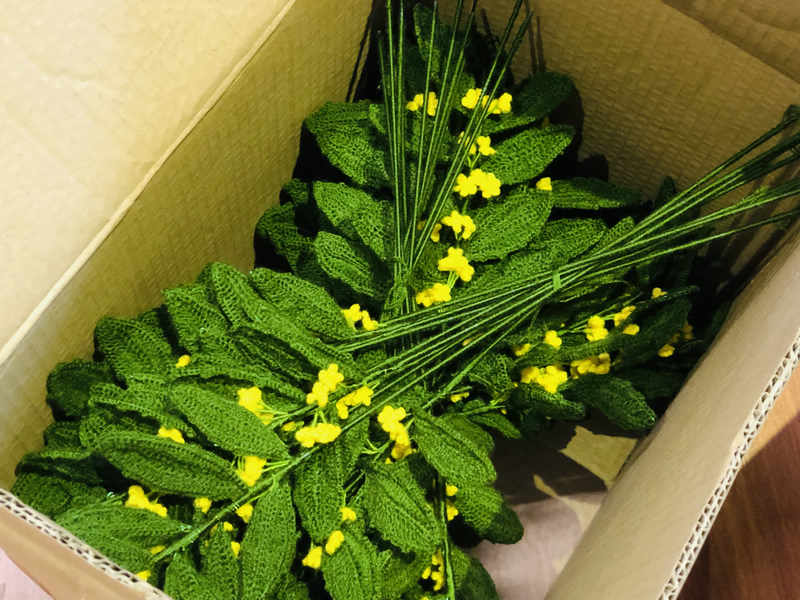 編織完成的絨線桂花成品被打包裝箱。親民社會(huì)工作服務(wù)中心供圖