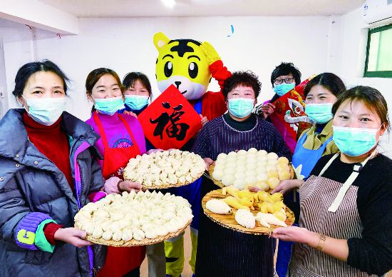 1月19日,在金華婺城區(qū)城西街道河盤橋社區(qū)活動室,部分留金過春節(jié)的外來務工人員一起做花饃、蒸饅頭、包餃子,提前感受家鄉(xiāng)過年的喜慶氣氛。河南開封籍的于紅霞說,今年她響應政府號召留金過春節(jié),丈夫平時開大貨車,常年奔波在外,非常辛苦,趁著春節(jié)可以在家里好好休息,她準備了一些家鄉(xiāng)特色的菜肴和面食。(時寬兵)
