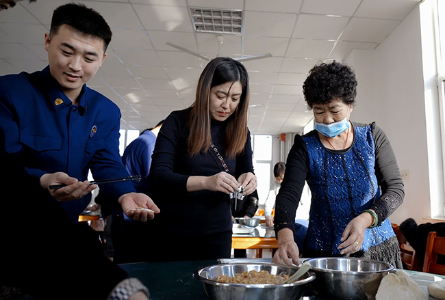一起包餃子。 濰坊諸城市消防救援大隊(duì)供圖