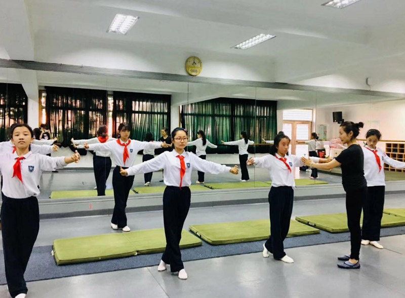 “我們?cè)谝龑?dǎo)學(xué)生的時(shí)候,比較偏重于美育方面,因?yàn)閷W(xué)生們?cè)谠絼》矫婊緵]什么基礎(chǔ)。我們就從越劇的美感入手,通過形體訓(xùn)練課,再融合瑜伽的元素,或者加一些欣賞性的內(nèi)容,讓學(xué)生們?nèi)ンw驗(yàn),去感受越劇是可以表情達(dá)意的,讓學(xué)生們?cè)谶@個(gè)過程中體會(huì)中華優(yōu)秀傳統(tǒng)文化的美?!蔽髂衔挥袑W(xué)藝術(shù)教師梁麗娟介紹道。