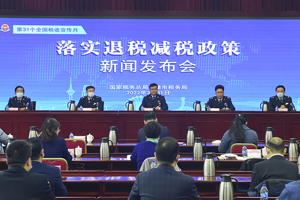 天津市稅務(wù)局黨委委員、副局長、市局退稅減稅辦主任付強(qiáng)通報了天津市稅務(wù)系統(tǒng)落實退稅減稅降費政策的總體部署,天津市稅務(wù)局黨委委員、總經(jīng)濟(jì)師、新聞發(fā)言人張連祥主持發(fā)布會,并就組織開展稅收宣傳月系列活動進(jìn)行介紹,相關(guān)業(yè)務(wù)處室圍繞更好落實新的組合式稅費支持政策、提升稅費服務(wù)質(zhì)效作了具體說明。