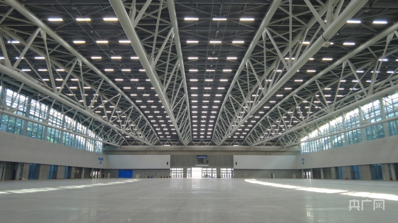 廣交會D區(qū)二層為4個面積為12000㎡的展廳,凈高度為18~21米(央廣網(wǎng)記者 夏燕 攝)