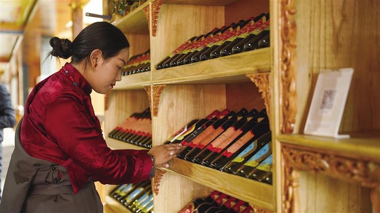 為了讓桑日葡萄酒產(chǎn)品走出去,湖南省援藏工作隊(duì)牽線搭橋,利用葡萄酒招商會(huì)、拉薩藏博會(huì)、北京中小企業(yè)年會(huì)及招商引資會(huì)等平臺(tái)做好宣傳推介,并幫助其成功上線湖南省消費(fèi)幫扶公共服務(wù)平臺(tái),形成了線上線下一體的營(yíng)銷模式。2023年,促成帕竹酒莊與湖南中車、岳陽市供銷社等單位簽訂定向購銷合同,累計(jì)帶動(dòng)桑日葡萄酒銷售額達(dá)230萬元。