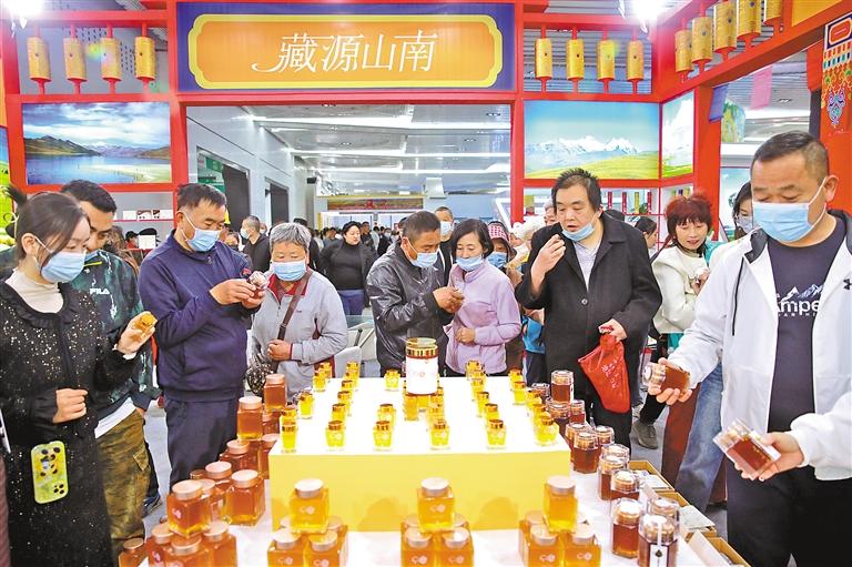圖為2023年4月,安徽省援藏工作隊(duì)組織山南市17家企業(yè)參加淮北食品工業(yè)博覽會(huì)。 (圖片由安徽省援藏工作隊(duì)提供)