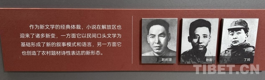 圖為中國現(xiàn)代文學(xué)館內(nèi),“山河跡憶——手稿里的抗戰(zhàn)中國”展覽中丁玲等作家的相關(guān)介紹