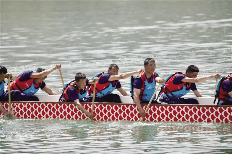 隨后,自治區(qū)體育局黨組副書(shū)記、局長(zhǎng)尼瑪次仁宣布活動(dòng)正式開(kāi)始,隨著比賽開(kāi)始,現(xiàn)場(chǎng)瞬間沸騰,鼓點(diǎn)聲、吶喊聲、槳葉擊水聲交織成激昂樂(lè)章,水面上的龍舟隊(duì)伍如離弦之箭破浪疾馳。選手們身著統(tǒng)一隊(duì)服,在舵手鏗鏘有力的指揮下,整齊劃一地?fù)]槳破水,動(dòng)作剛勁有力,節(jié)奏緊湊有序。