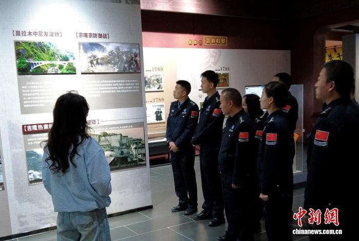 圖為吉隆出入境邊防檢查站組織民警在吉隆鎮(zhèn)參觀清軍護(hù)藏衛(wèi)國紀(jì)念館。肖富貴 攝