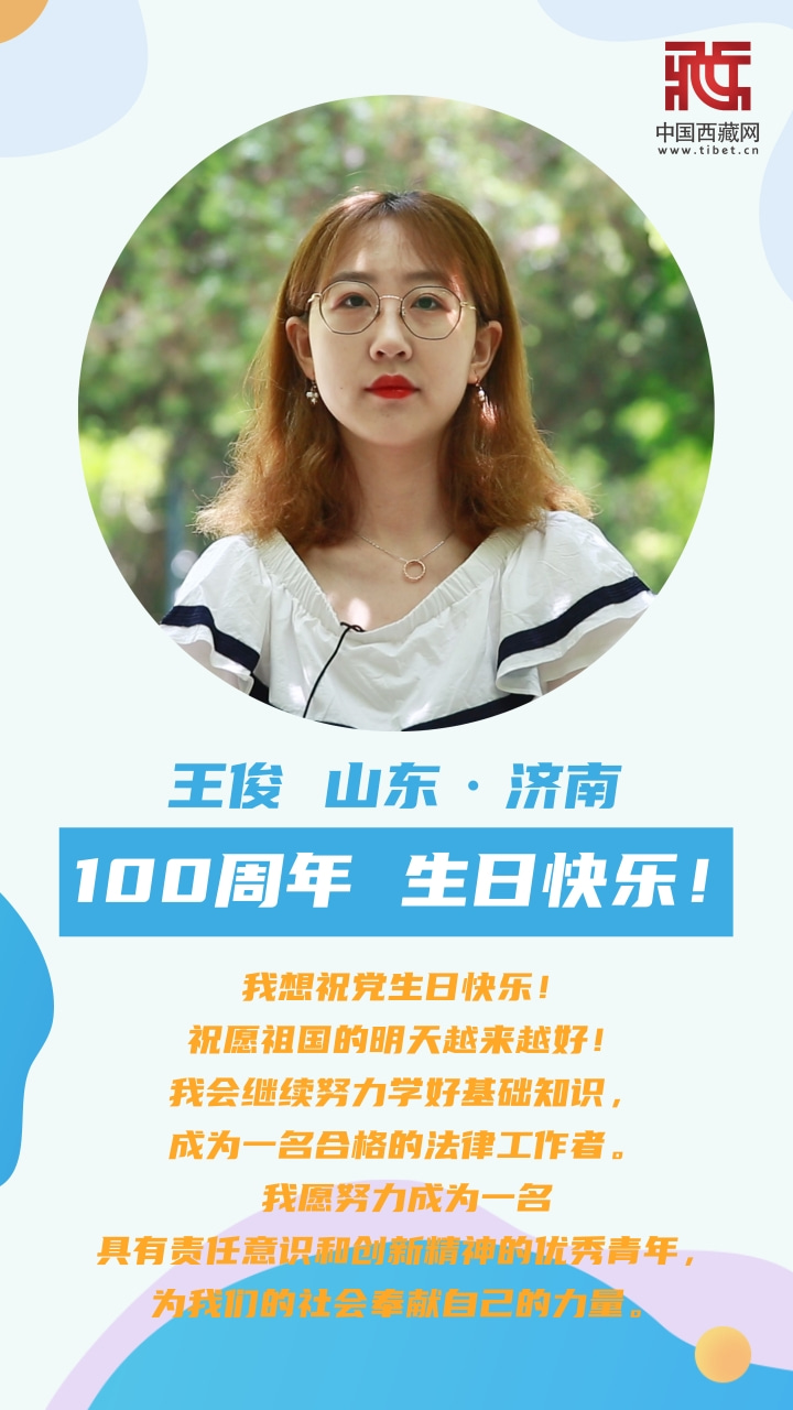 100年前,中國(guó)共產(chǎn)黨為苦難深重的中華民族帶來(lái)了光明與希望,100年后,中國(guó)人民在中國(guó)共產(chǎn)黨的帶領(lǐng)下,看到了中華民族偉大復(fù)興的曙光。在中國(guó)共產(chǎn)黨成立100周年之際,一起聆聽(tīng)新時(shí)代青年學(xué)子送上的祝福?。ㄖ谱?許娜 編輯/澤仁措姆)
