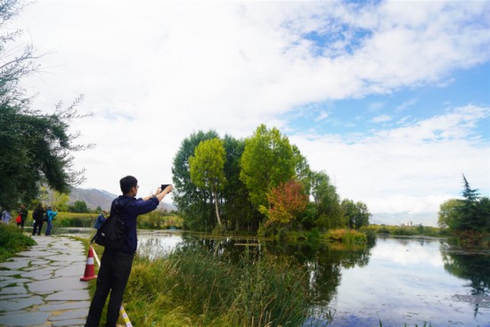 9月初,濕地里的花草樹木從夏天的翠綠到初秋的泛黃,成為了拉魯濕地另一番美景。 人們在步行其間,呼吸著充足的氧氣,情緒高漲,邁開輕快而有力的步伐,沿著拉魯濕地步道健步前行,時而駐足觀望沿途美景,時而聚集一方合影留念,不僅鍛煉了身體,又領(lǐng)略了自然風(fēng)光,也陶冶了情操。