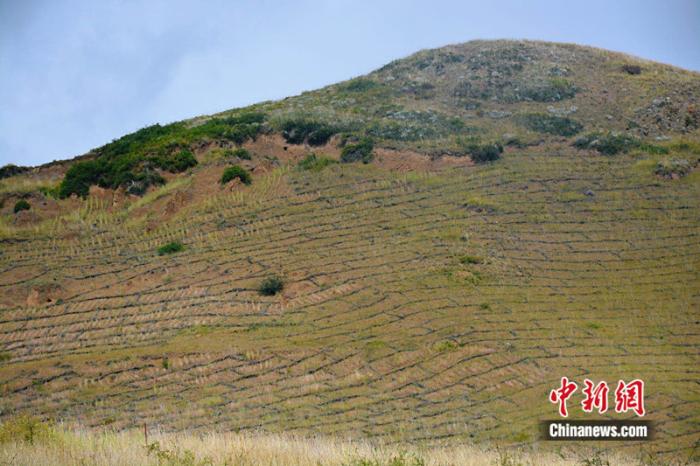 山坡上呈網(wǎng)格狀的高山柳沙障。房家梁 攝
