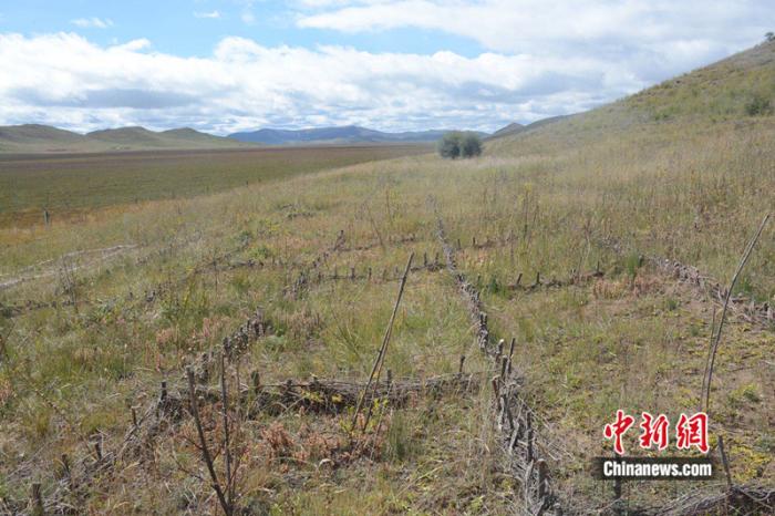 走進(jìn)四川省阿壩州若爾蓋縣轄曼鎮(zhèn)西倉(cāng)村治沙點(diǎn),山坡上巨大的“棋盤(pán)”格外醒目??h林草局生態(tài)修復(fù)股助理工程師涂勝介紹,這是用于治理草原沙化的高山柳沙障。