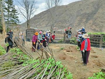 爐霍縣斯木俄米脫貧攻堅(jiān)造林專合社組織村民下苗,準(zhǔn)備栽種。 (爐霍縣林草局供圖)