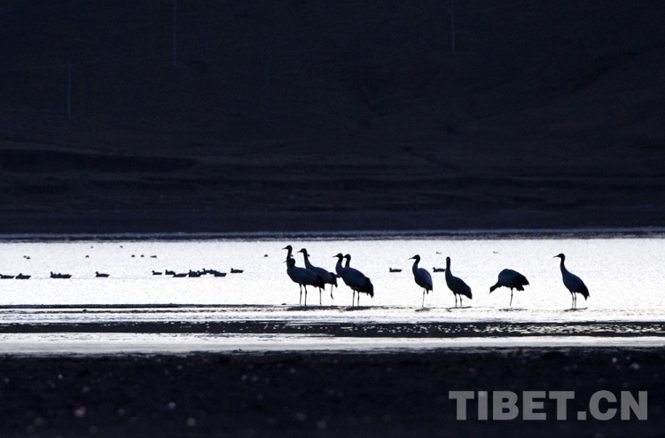 兩面夾山、背風(fēng)向陽(yáng)的虎頭山水庫(kù),是候鳥(niǎo)的主要夜棲地。每年10月中旬開(kāi)始,國(guó)家一級(jí)野生保護(hù)動(dòng)物黑頸鶴便從逐漸寒冷的藏北草原出發(fā),成群結(jié)隊(duì)地飛越叢山峻嶺遷徙到虎頭山水庫(kù)以及其所處的雅魯藏布江中游河谷地帶越冬。