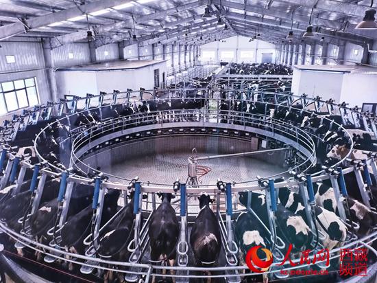 全自動(dòng)轉(zhuǎn)盤(pán)式擠奶車間。 李海霞 攝