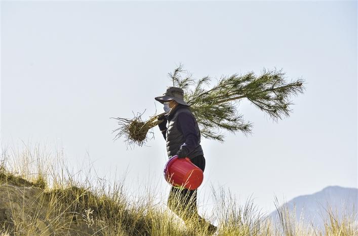 “今年是全國義務(wù)植樹運動40周年,圍繞全民義務(wù)植樹,拉薩市林草局率先垂范,今天,共栽植沙棗、銀白楊、油松、云杉、細葉紅柳2600余株。”拉薩市林草局林勘所科長晉美說,“下一步,我們會按照樹木栽植的養(yǎng)護機制每十天安排一次澆灌、除草、施肥等工作?!?/p>