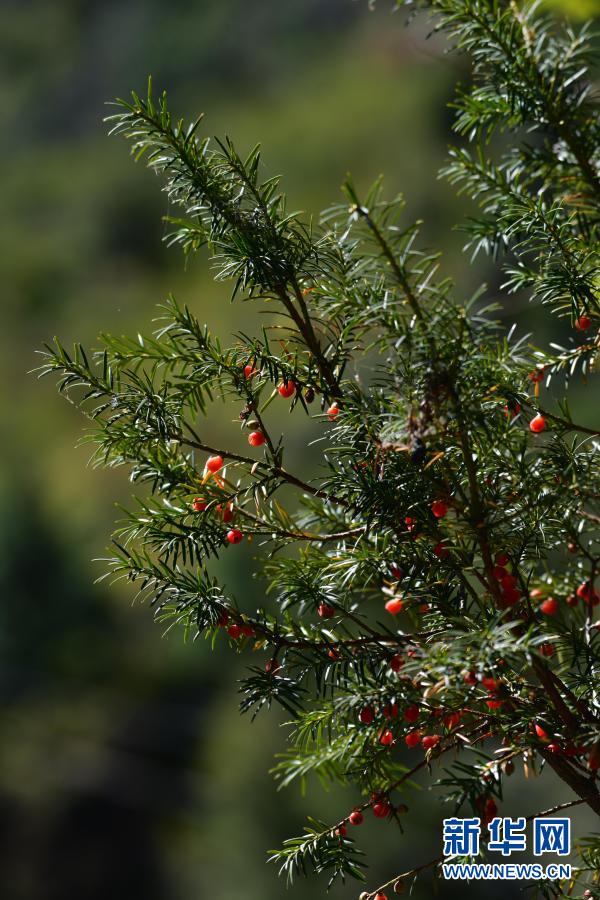 這是科研人員在西藏定日縣絨轄溝發(fā)現(xiàn)的密葉紅豆杉(2020年10月27日攝)。新華社發(fā) 趙明旭 攝