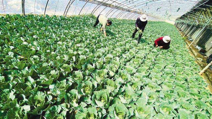曲水縣聶當(dāng)鄉(xiāng)當(dāng)?shù)剞r(nóng)民為溫室大棚內(nèi)種植的蔬菜除草。