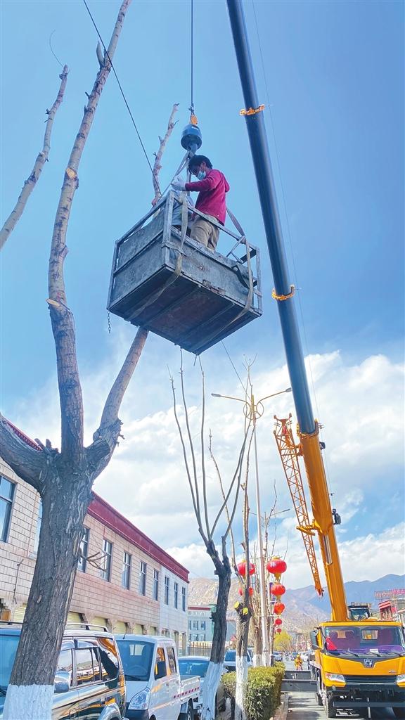 拉薩市園林相關(guān)單位對(duì)市區(qū)開(kāi)展春季樹(shù)木修剪工作。