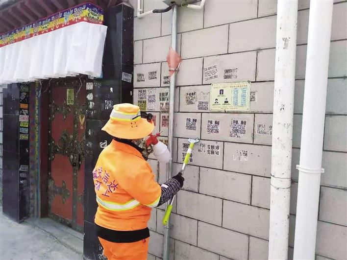 為有效遏制城市“牛皮癬”,拉薩城關(guān)區(qū)潔達環(huán)衛(wèi)保潔有限公司強化巡查及整治力度,對小廣告進行徹底清除。對于很長一段時間沒有被清理的小廣告,公司還會對負責(zé)相關(guān)區(qū)域的環(huán)衛(wèi)工人進行罰款。