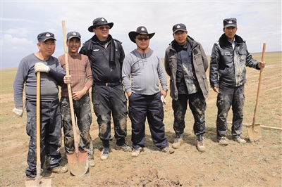 可可西里保護(hù)區(qū)工作人員在巡山途中。右三為布周。可可西里管理處供圖