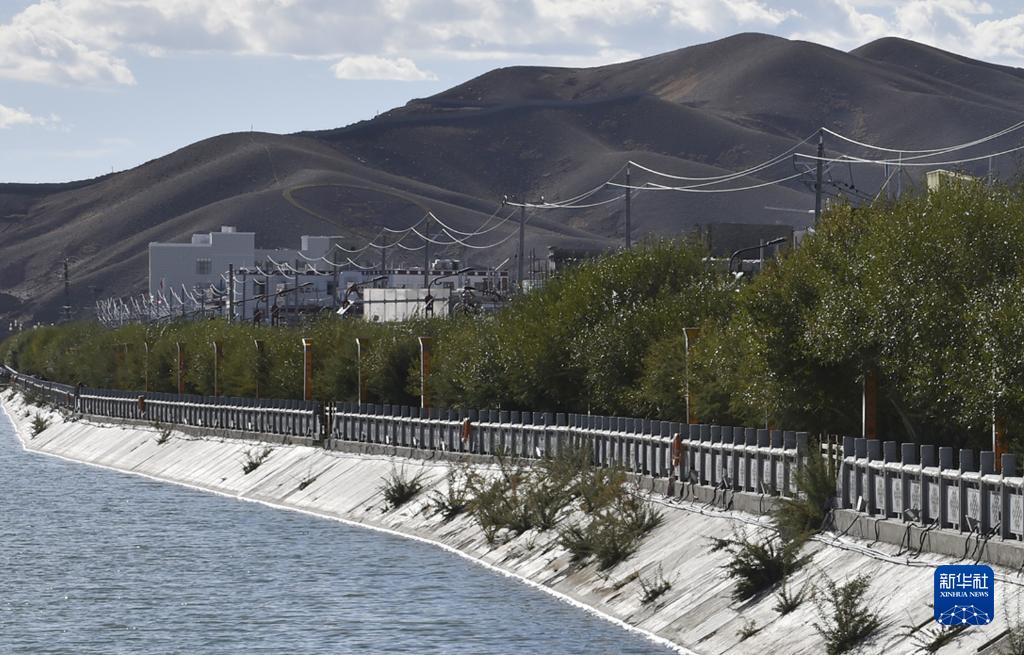 西藏阿里獅泉河鎮(zhèn)道路旁邊綠樹成蔭(9月19日攝)。新華社發(fā) (索朗羅布 攝)
