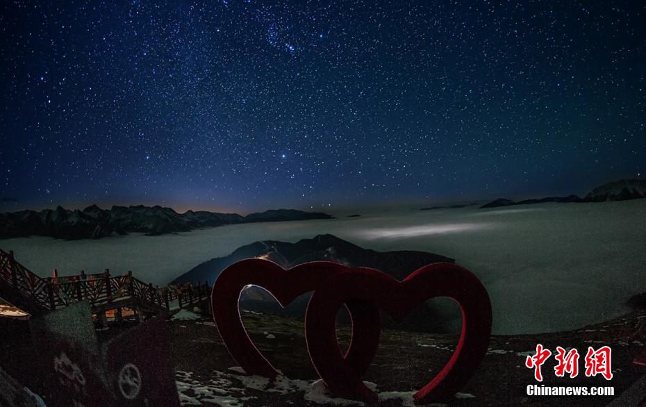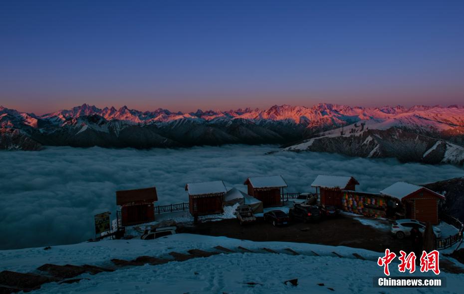 連日來(lái),位于四川省雅安市寶興縣磽磧藏族鄉(xiāng)的達(dá)瓦更扎景區(qū)雪后放晴。期間,日出、藍(lán)天、云海、雪山、星空等美景如畫(huà),夢(mèng)幻飄渺,蔚為壯觀。圖為日照金山。高華康 攝