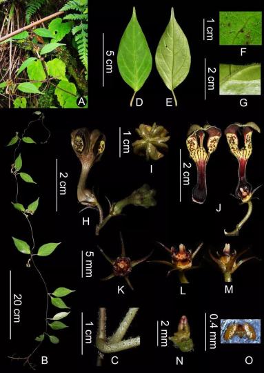 2021年7月中旬至8月初,由西雙版納植物園星耀武研究員率隊(duì)的聯(lián)合考察隊(duì),對西藏日喀則地區(qū)喜馬拉雅南坡的維管植物進(jìn)行了考察和標(biāo)本采集。考察人員在吉隆縣薩勒鄉(xiāng)發(fā)現(xiàn)一種正處于盛花期的吊燈花屬未知植物。通過解剖拍照、文獻(xiàn)查閱及相似種的模式標(biāo)本核對后,最終確認(rèn)為一新種。根據(jù)其模式產(chǎn)地,將其命名為吉隆吊燈花(Ceropegia jilongensis)。