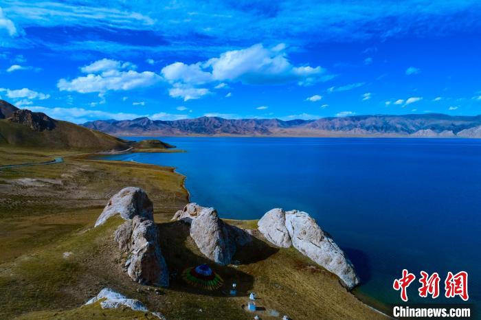 圖為黃河源頭湖泊在藍(lán)天下如圖明鏡?!‖敹嗫h委宣傳部 供圖
