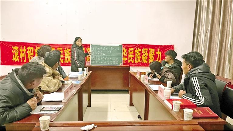 今年以來,駐朗縣洞嘎鎮(zhèn)滾村工作隊積極組織村“兩委”班子開展國家通用語言文字培訓,提升村干部運用國家通用語言文字能力,增強村干部服務群眾水平,不斷鑄牢中華民族共同體意識。