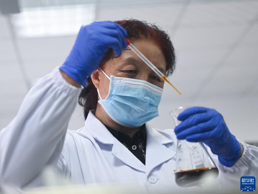 張錦梅在青海省西寧市林業(yè)科學(xué)研究所實驗室內(nèi)配制藥劑(2022年9月14日攝)。新華社記者 張龍 攝
