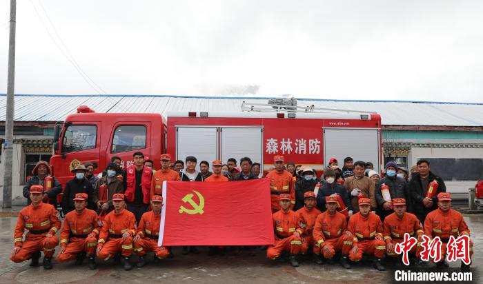 林芝市森林消防支隊(duì)巴宜區(qū)中隊(duì)消防救援人員與地方民眾合影留念。 西繞拉翁 攝