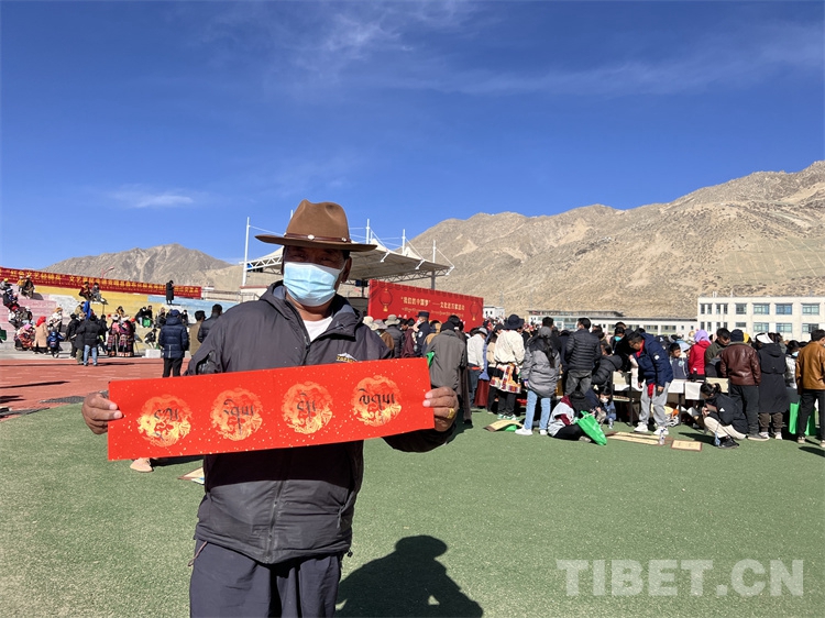 “我來自那曲安多縣,在森布日生活已有近一年,這里氣候暖,基礎設施齊全,真是趕上了好政策”66歲的多布杰說,他還主動拿起書法家現(xiàn)場書寫并贈送給他的吉祥對聯(lián)說:“今天真是很開心,觀看了一場精彩的節(jié)目,還得到了書法家寫的‘扎西德勒’吉祥對聯(lián),這個我要貼在家里的門窗上”。