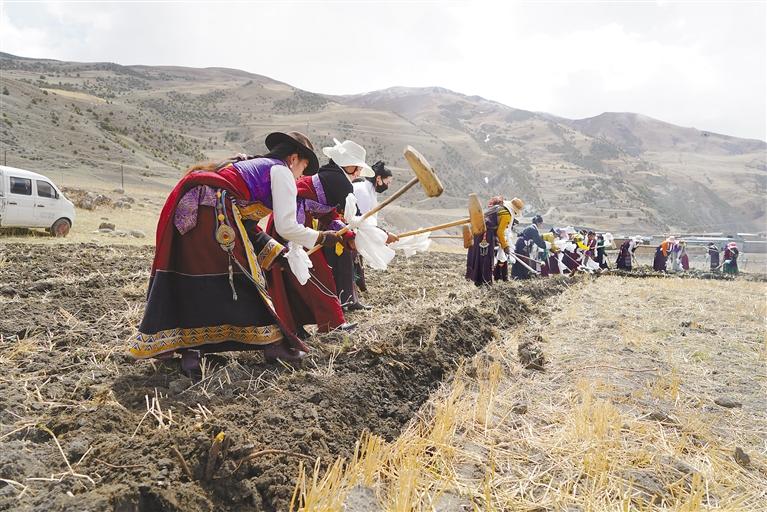 婦女們?cè)谄秸锏亍S浾?曲珍 通訊員 益西卓瑪 攝