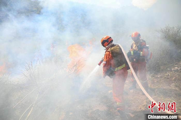 演練現(xiàn)場,森林消防進(jìn)行滅火。昌都市森林消防支隊(duì) 供圖