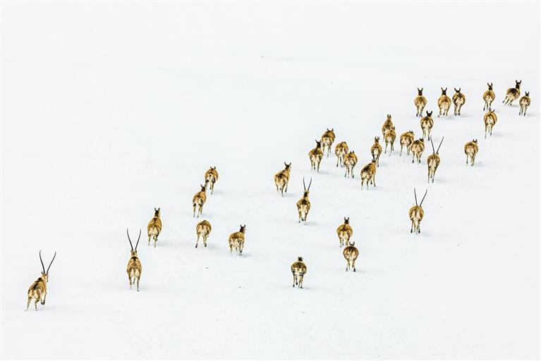 青藏高原的蒼茫大地間,一群群母藏羚羊排成長隊(duì),向著“產(chǎn)房”走去,這是被譽(yù)為“全球最壯觀的三大有蹄類動(dòng)物大遷徙之一”的藏羚羊遷徙。
