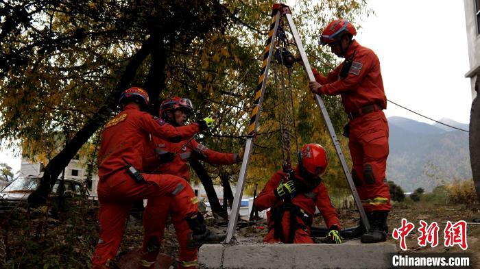 圖為地震救援實(shí)戰(zhàn)化演練中開展豎井救援。西繞拉翁 攝