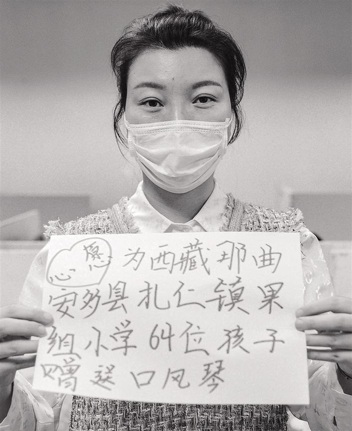 3月6日,為了讓奮戰(zhàn)在抗疫一線的英雄感受到社會的敬意,阿里巴巴天天正能量聯(lián)合全國媒體發(fā)起了“共圓英雄夢”活動。記者詢問柏雪有什么心愿,她說:“我想給西藏那曲市安多縣扎仁鎮(zhèn)果組小學的64名孩子送口風琴!”