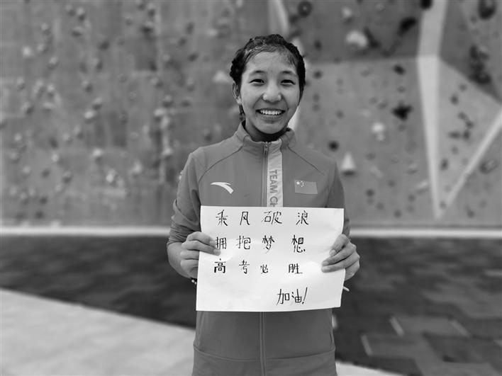 “乘風(fēng)破浪,擁抱夢(mèng)想,高考必勝。”西藏滑雪隊(duì)的隊(duì)員們也送來(lái)了祝福。