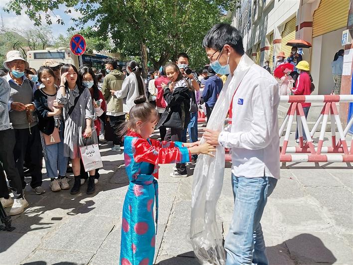 最后一門考試結(jié)束,我們?cè)诂F(xiàn)場(chǎng)看到,考生走出來(lái)的時(shí)候,有家人送上鮮花和哈達(dá),也有來(lái)自朋友最暖心的擁抱,祝福他們通過(guò)了人生中最重要的一次考試。