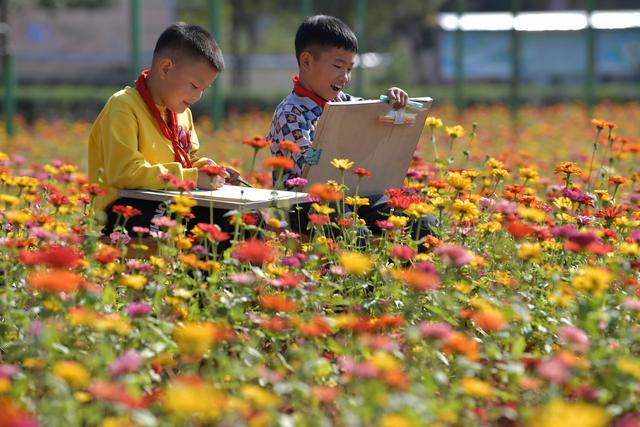 今年暑假剛剛到任江西省宜春市袁州區(qū)寨下鎮(zhèn)中心小學(xué)的殷大福校長看著教學(xué)樓前一大片長滿雜草的荒地,希望能在上面做點(diǎn)文章,讓孩子們課后有個(gè)休閑活動(dòng)的好去處。于是,他和老師們一起平整荒地,種下百日草的種子,開辟出花田和草坪。如今,昔日的荒地上已綻放出一片絢爛的花海,學(xué)生們的學(xué)習(xí)生活因此更加豐富多彩。美術(shù)課、十字繡興趣小組的同學(xué)紛紛到花田邊寫生、采風(fēng),孩子們?cè)诰G地里玩耍訓(xùn)練。每周,殷大福校長還會(huì)組織不同班級(jí)的學(xué)生下田勞動(dòng),為鮮花松土、施肥、澆水,讓他們親身體驗(yàn)守護(hù)生活中美好的滋味。呵護(hù)、陪伴、欣賞……一顆顆真善美的種子在學(xué)生們的心底悄然種下。